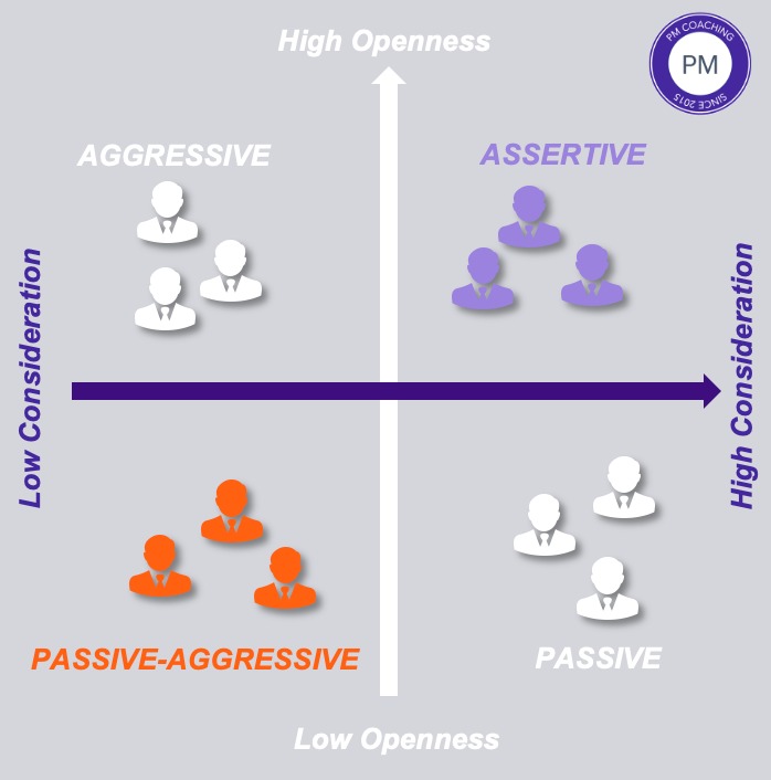 Il existe en complément 4 styles principaux de communications qui par ailleurs se classent selon le niveau d'ouverture (openness en Anglais) et de considération : agressif, assertif, passif et passif-agressif.